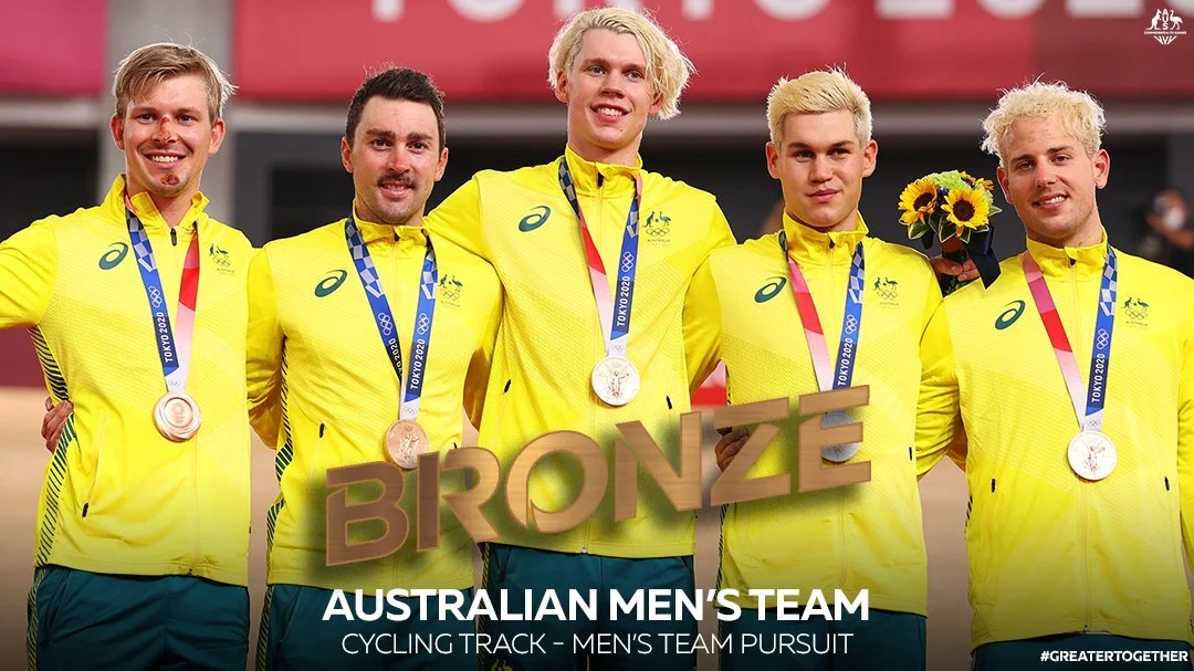 Luke Plapp (Far Right) wins a bronze medal at the 2020 Tokyo Olympics in the Cycling - Teams Pursuit